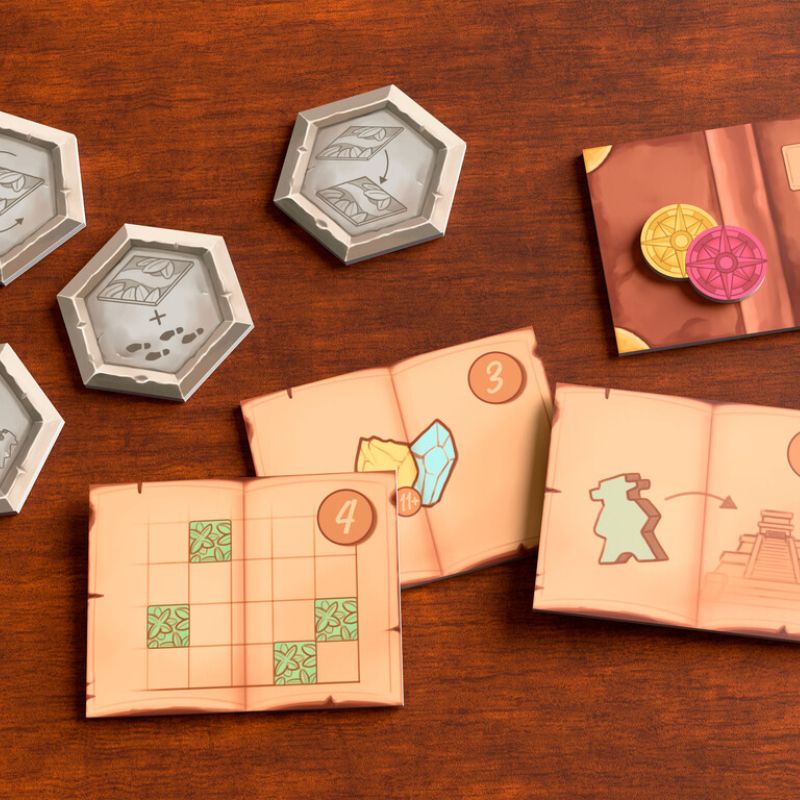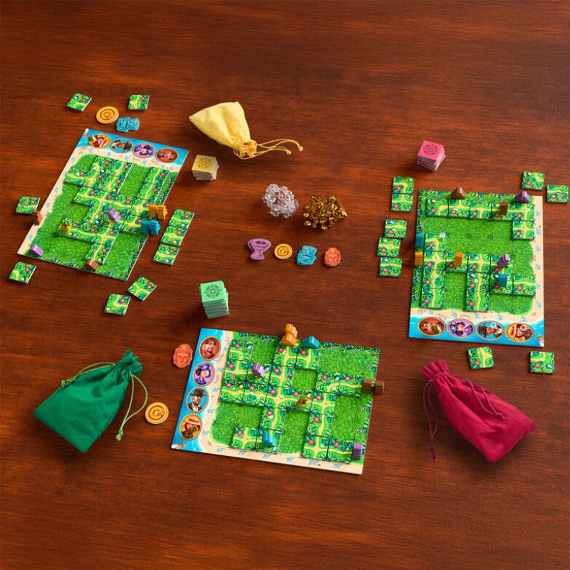 En el recorrido, los jugadores pueden recoger gemas blancas y doradas para obtener puntos adicionales, pero cada decisión cuenta: ¿construir un camino más largo o moverte más rápido? El primero en alcanzar un templo consigue los mayores tesoros, y al final gana quien sume más puntos.