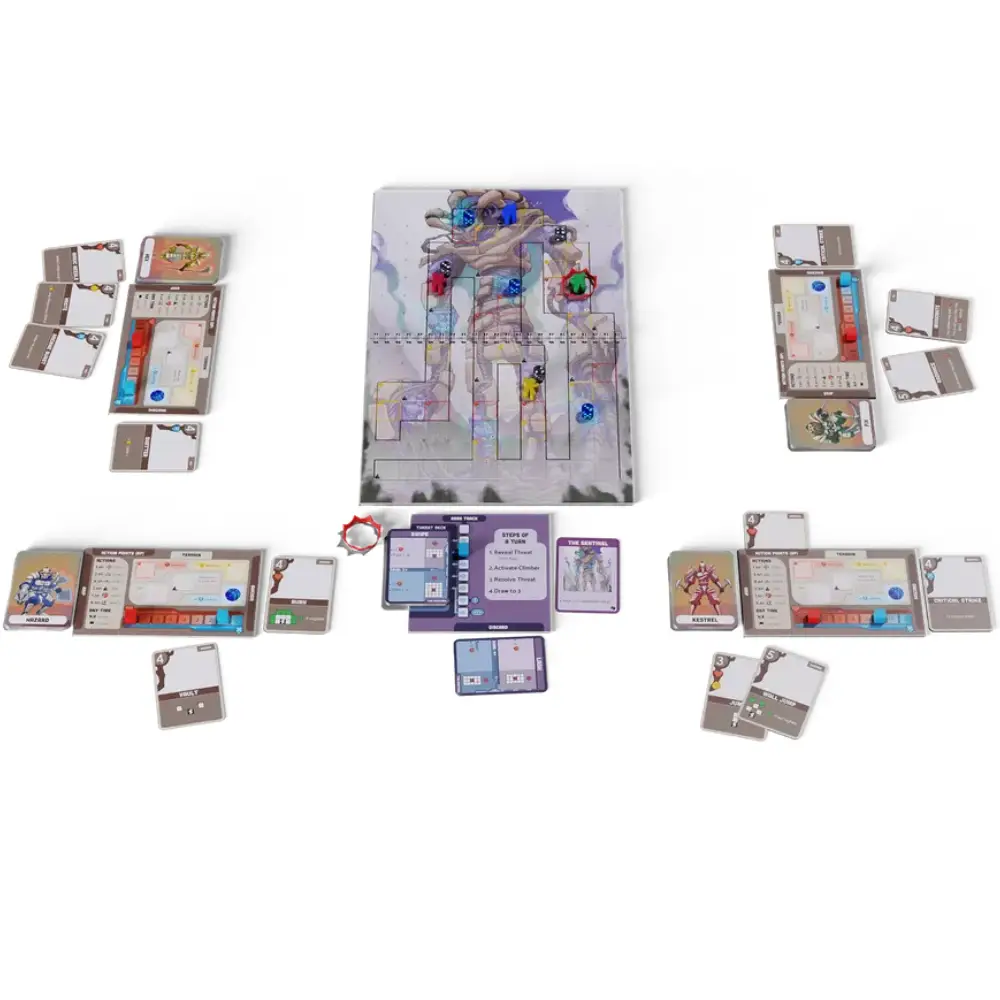El propio leviatán cuenta con su mazo de eventos, que se activa al inicio de cada turno de jugador. Sus cartas pueden infligir daño directo, desplazar a los escaladores o debilitar su agarre. Además, a medida que avanza la partida, la criatura acumula rabia, intensificando los efectos de sus acciones y aumentando la presión sobre el grupo.